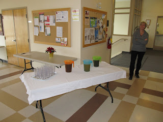 After the youth group sent flyers into the neighbourhood, and Bea, Harold, Annette B and myself handed out flyers to the surrounding businesses, we prepared for the Jazz concert. We set up Juice and water....